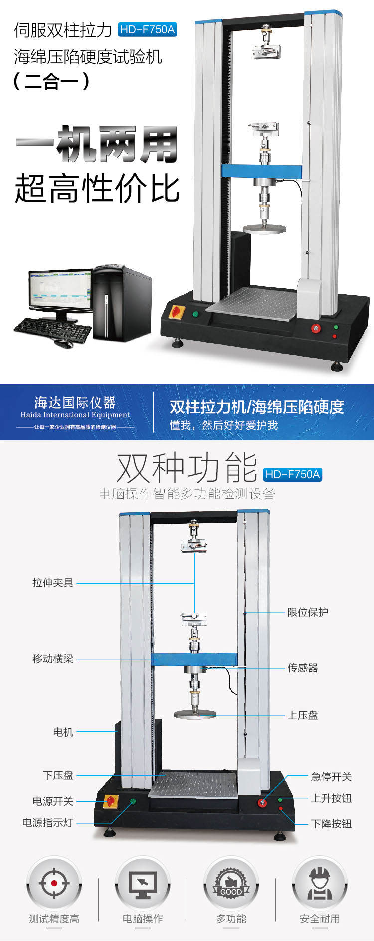 海綿壓陷硬度與拉壓(二合一)試驗機HD-F750A